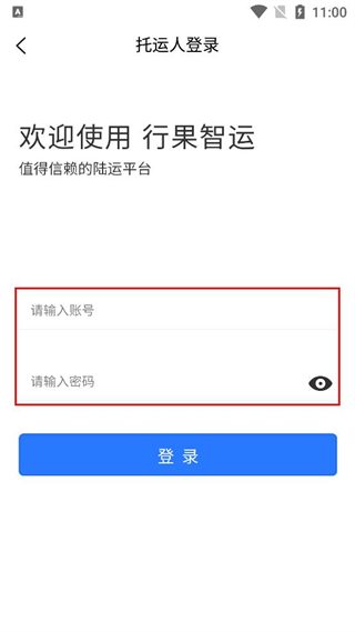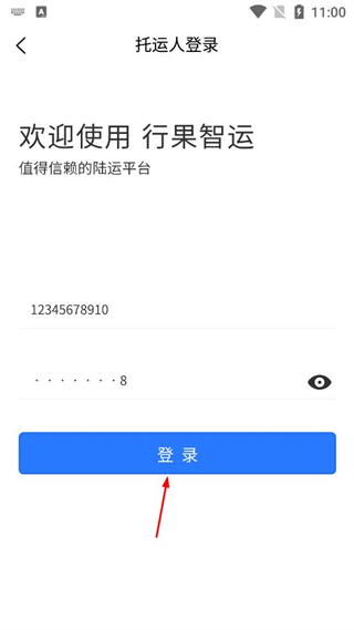 4、确认账号密码填写完整后,点击登录按钮完成行果智运托运人的登录操作。