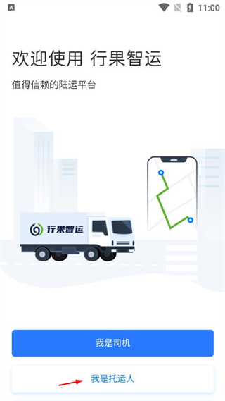 2、进入欢迎页面,找到我是托运人选项,点击该选项进入托运人登录界面。