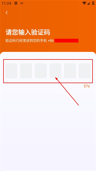 3、最后在验证码页面,将收到的验证码,填入输入框完成验证。