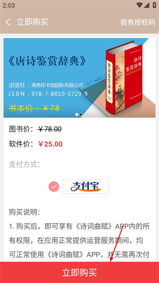 3、在购买页面确认商品信息与支付方式后,点击立即购买完成操作。