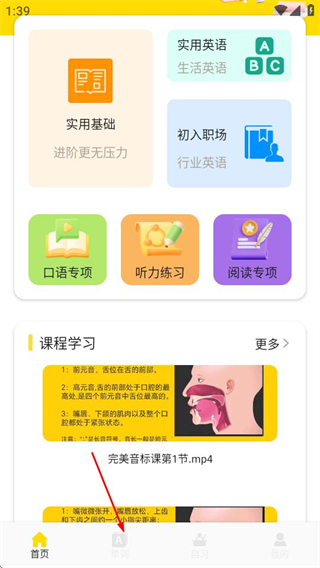 1、在Whats口语首页点击底部单词选项,进入单词学习页面。