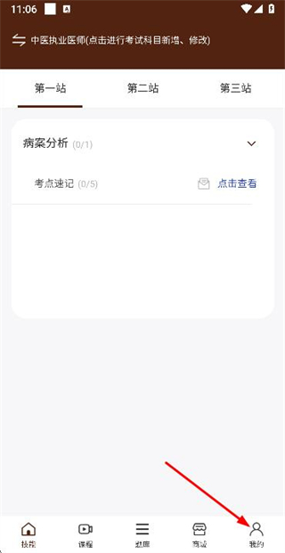 1、在技能页面点击底部我的,进入个人中心页面。