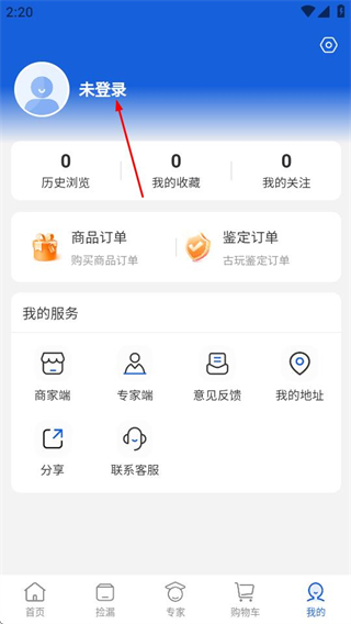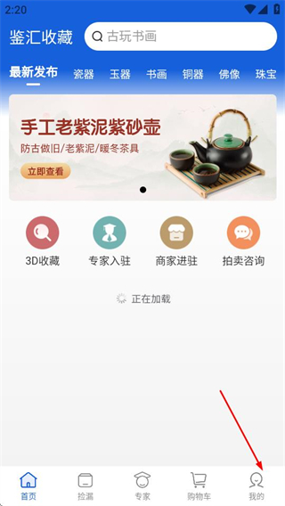 1、在鉴汇收藏首页点击底部我的选项,进入个人中心页面。