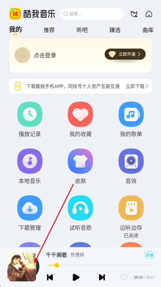 1、打开酷我音乐应用,点击底部导航栏中的我的选项。