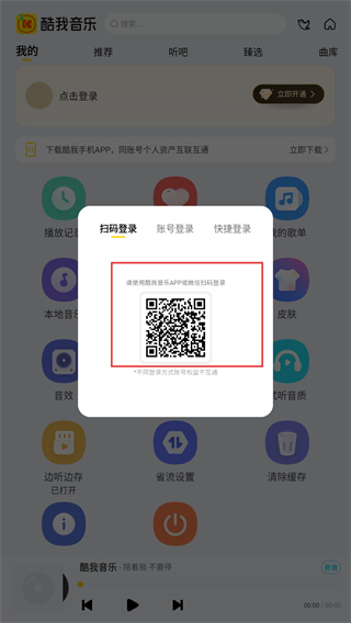 3、使用酷我音乐APP或微信扫描该二维码,完成授权后即可登录账号。