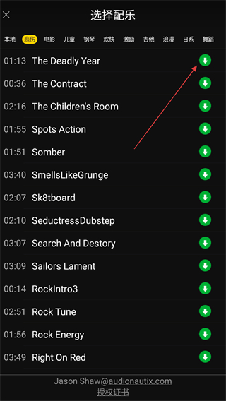 5、进入选择配乐的界面内,选择并点击右侧下载的图标即可。