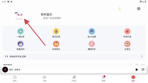 1、打开聆听音乐APP,进入到首页内,点击导航栏右下角我的图标直接跳转。