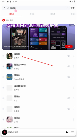 3、在搜索结果列表中,点击对应的歌曲条目即可查看或播放。