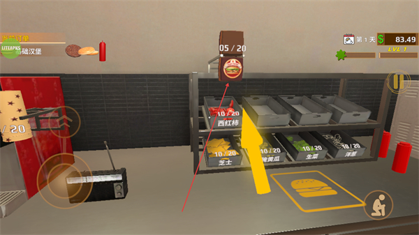 4、前往食材区,获取制作基础汉堡所需的食材,准备制作餐品。