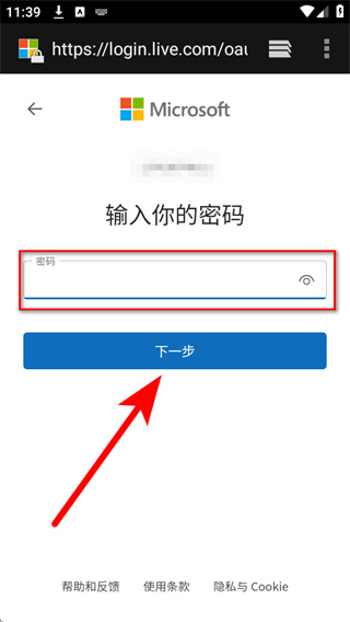 4、在密码输入页面填写该Microsoft账号的密码,点击下一步,即可完成动画疯的登录。