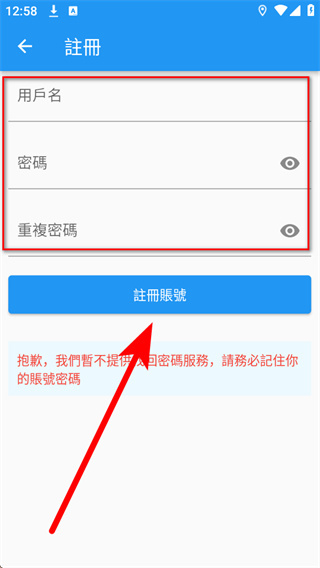 3、在注册页面,依次填写信息后,点击註冊賬號,完成账号注册。