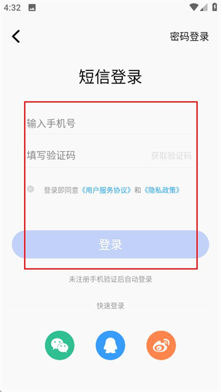 3、在登录页面填写手机号与验证码,即可完成登录操作。