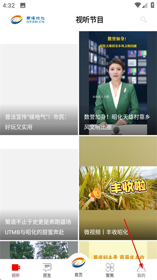 1、在蜀道昭化视听页面点击底部我的选项,进入个人页面。