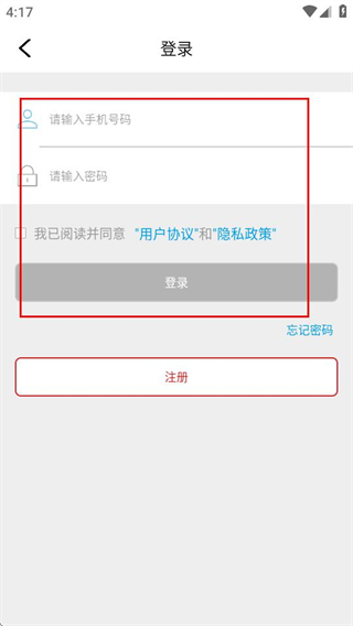3、在登录页面填写手机号码与密码,勾选协议后点击登录完成操作。