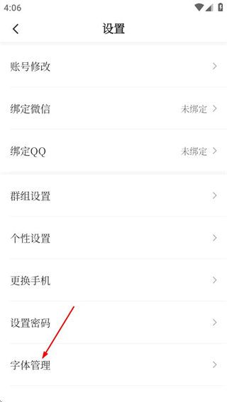 3、在设置页面选择字体管理选项,进入字体管理页面。