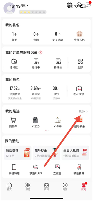 1、可以通过点击中国联通首页下我的按钮,进入我的主页中。
