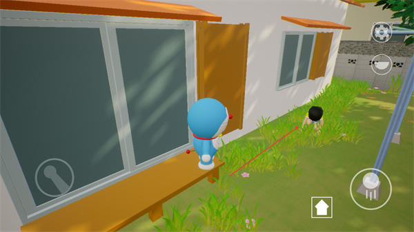 1、操控哆啦A梦在庭院移动,靠近目标角色,推进互动流程。