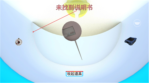 3、使用道具查看区域,显示未找到说明书,点击收起道具关闭界面。