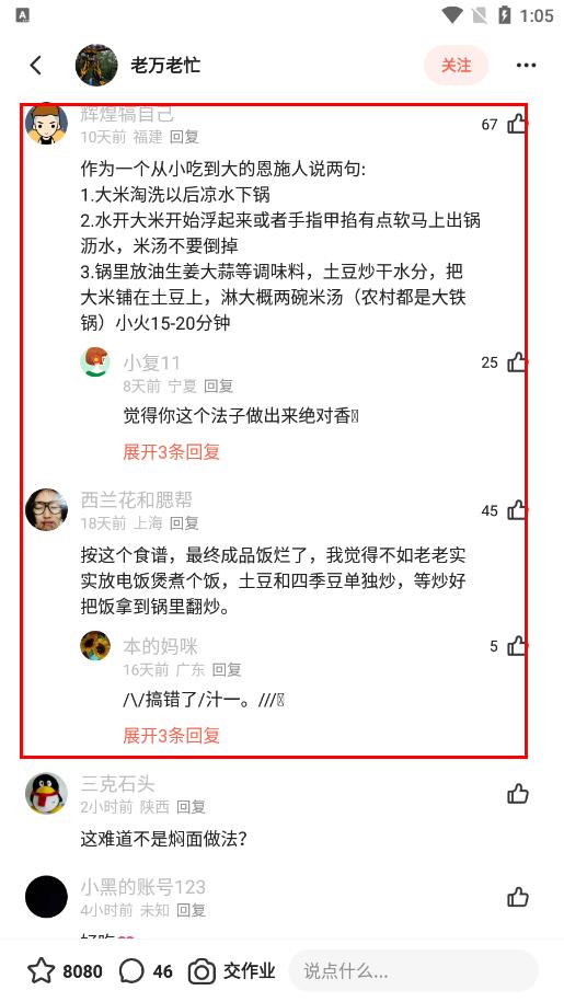 4、在菜谱底部的评论区,可查看其他用户对该菜谱的反馈、建议,以及分享的个人经验。