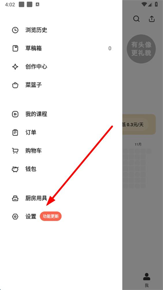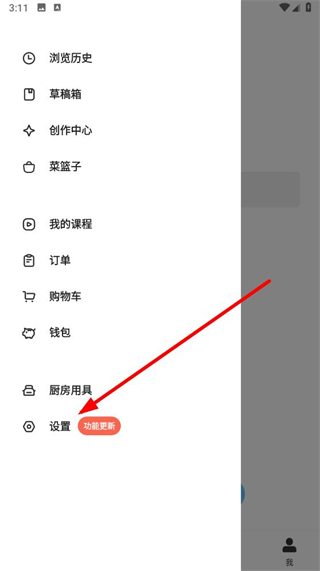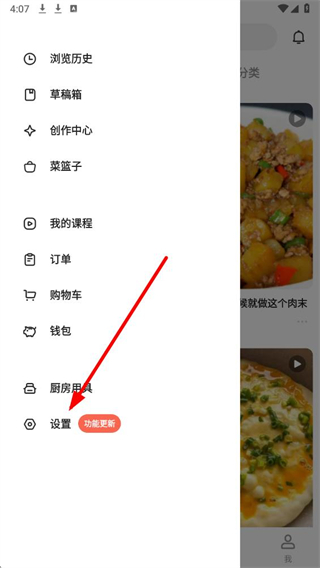 1、在下厨房app界面左上角,找到菜单按钮并点击,展开包含各类功能入口的侧边栏列表。