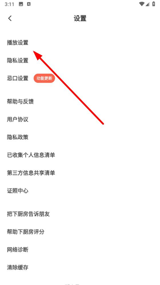 4、在设置界面中,点击播放设置选项,进入播放设置页面。