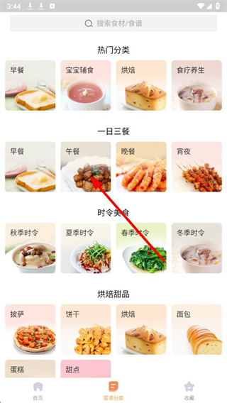 1、打开家常菜做法大全APP后,点击底部菜谱分类进入分类页面。