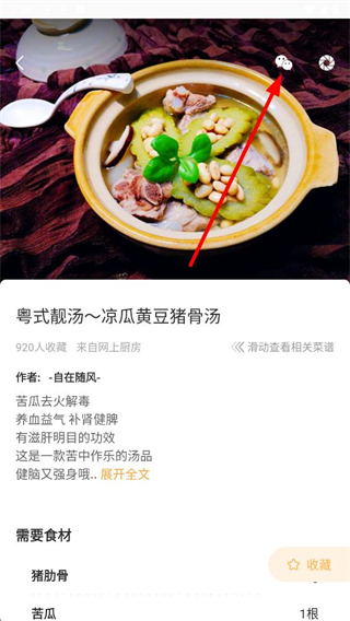 4、在菜谱详情页面的右上角,找到微信分享图标并点击,即可将该菜谱分享至微信平台。