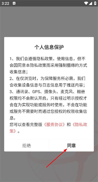 1、在使用协议隐私政策弹窗中点击同意按钮,进入登录页面。