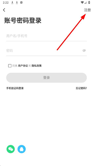 3、在登录界面的右上角,找到注册按钮并点击,进入新账号注册的信息填写页面。