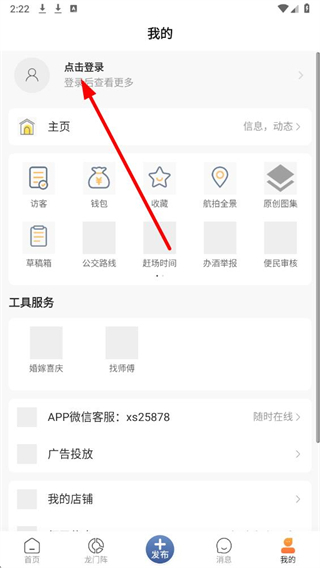 2、在我的界面中,找到点击登录区域并点击,跳转至登录页面。
