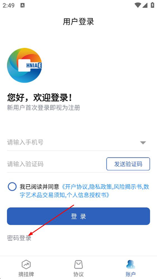 4、在密码登录页面,填写手机号和密码,点击登录,完成登录。
