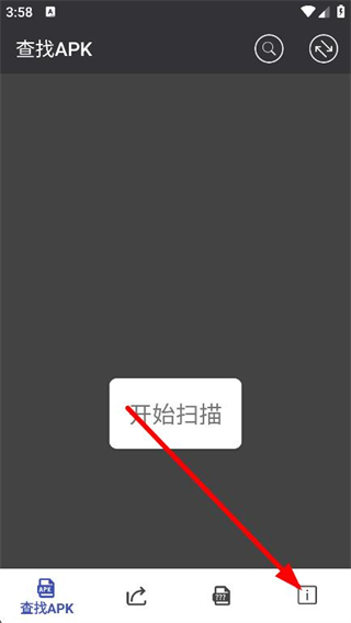 1、打开apk安装包管理app,点击底部导航栏的关于选项。