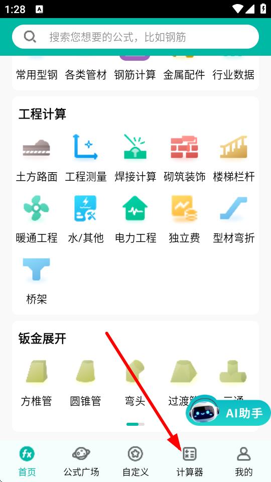 1、打开建工计算器应用,点击底部导航栏中的计算器选项。
