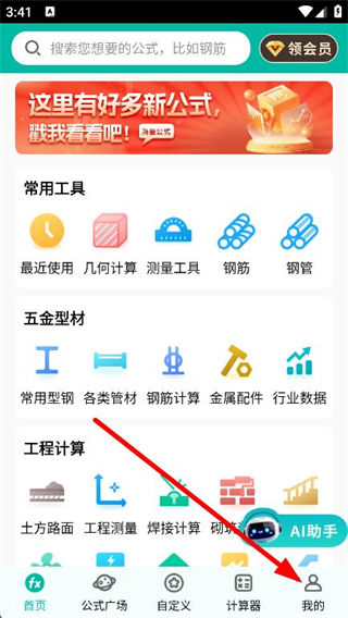 1、打开建工计算器APP,点击我的选项,进入个人中心。