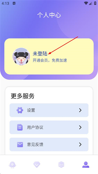 2、在个人中心页面,点击未登录的区域,进入登录选择页面。