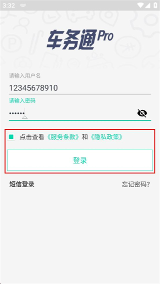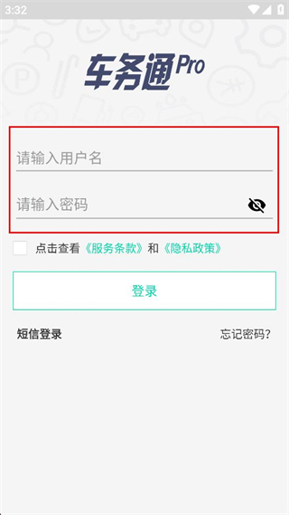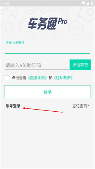 1、打开车务通Pro应用,阅读弹出的服务协议和隐私政策,点击同意按钮进入登录界面。