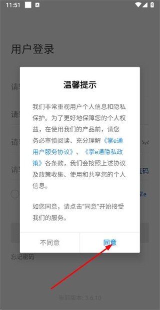 1、在温馨提示弹窗中点击同意按钮,进入用户登录页面。