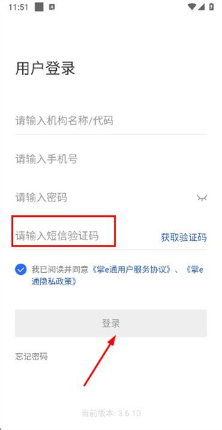 3、在登录页面输入短信验证码后,点击登录按钮完成登录操作。