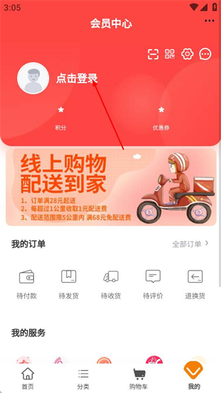 2、在会员中心页面点击点击登录区域,进入登录页面。