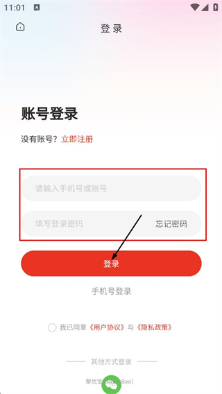 4、在账号登录页,填写手机号或账号和登录密码,点击登录,完成账号登录。