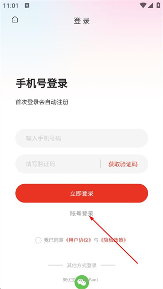 3、随后我们可以在登录页,点击账号登录选项,切换至账号登录方式。