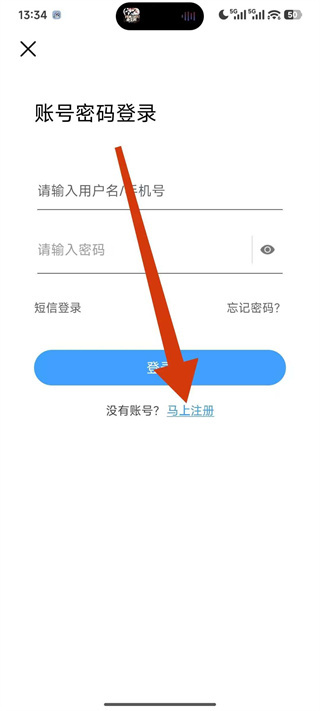 4、在账号密码登录界面,点击马上注册,进入账号注册页面。