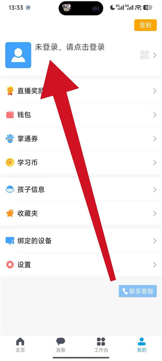 2、在个人中心页面,点击未登录,请点击登录区域,进入登录页面。