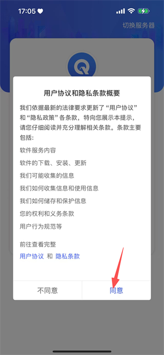 1、阅读用户协议和隐私条款后,点击同意,即可进入应用。