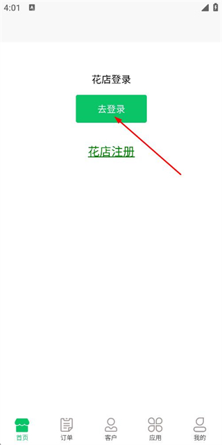 1、在花店登录页面点击去登录按钮,进入花掌柜登录界面。
