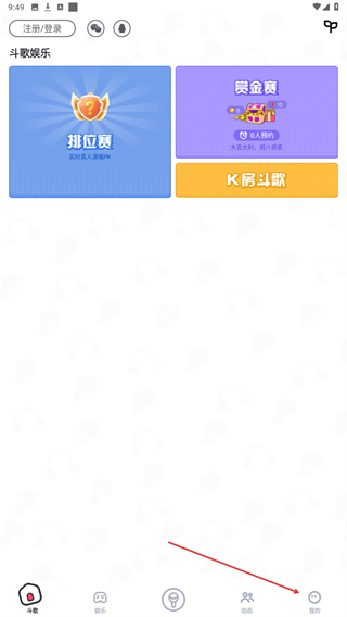 1、打开酷狗唱唱后,点击界面右侧的我的按钮,进入个人中心页面。