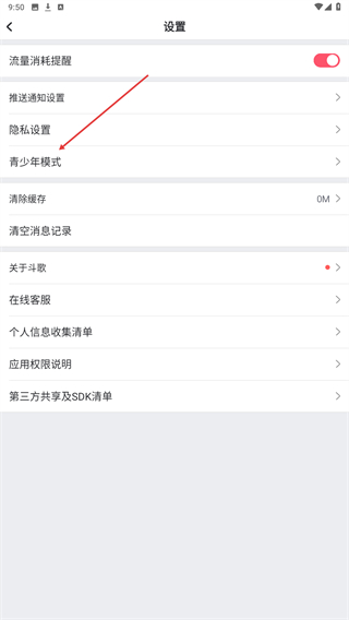 3、在设置列表中,找到青少年模式这一选项并点击,跳转至功能说明页面。