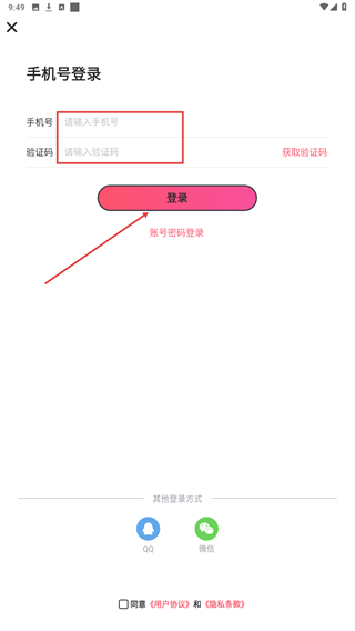 3、输入手机号、验证码后,点击登录即可完成。