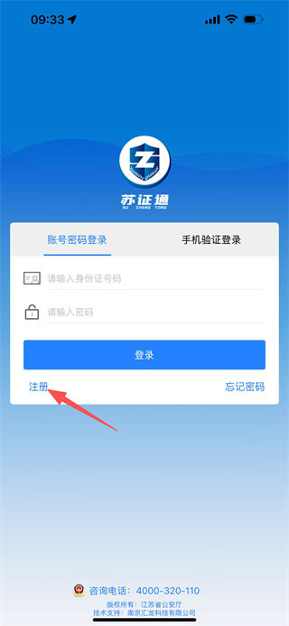 1、在苏证通登录页,点击注册的选项,进入身份验证页面。