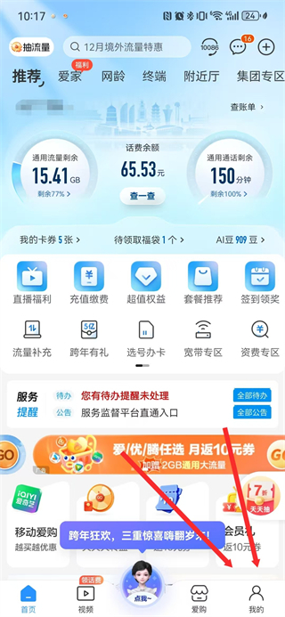 【业务办理】特惠流量、超值套餐、宽带号卡等热门业务一键办理。还有新款5g手机,让您快人一步,体验5g极速服务。